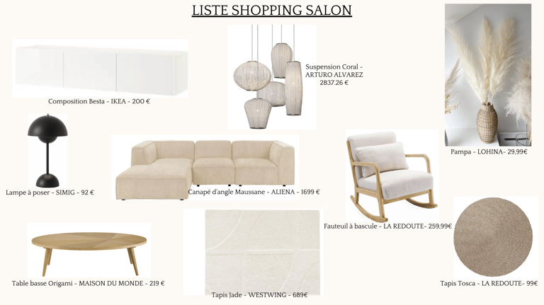 Recevez une liste d'achat personnalisée du mobilier et des éléments de décoration utilisés pour votre projet.