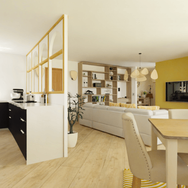 Elle regroupe quasiment toutes les pièces essentielles d'un intérieur : coin salon, salle à manger, cuisine et parfois même l'entrée.