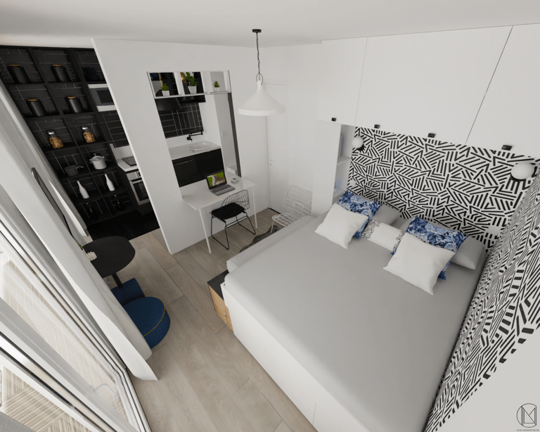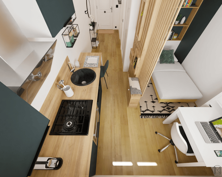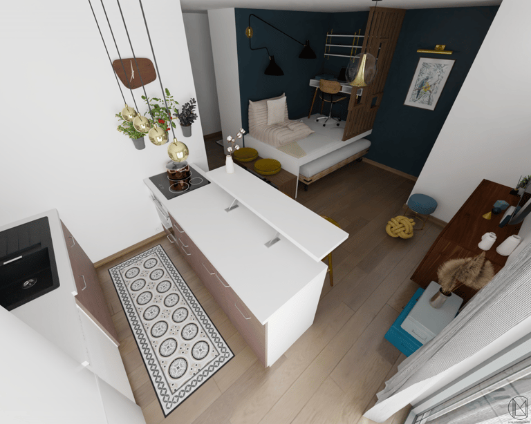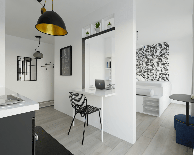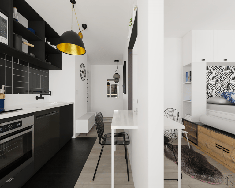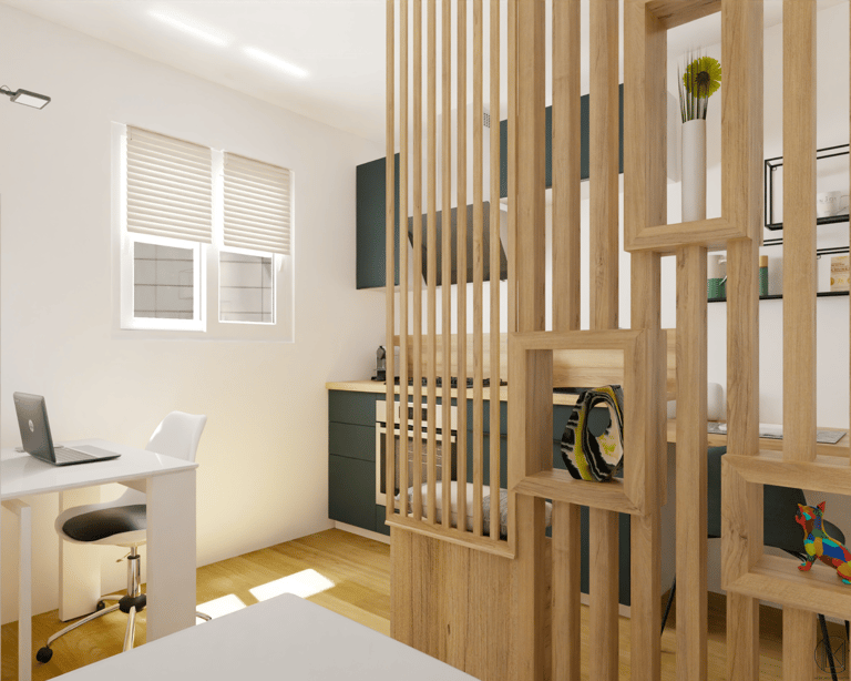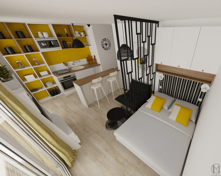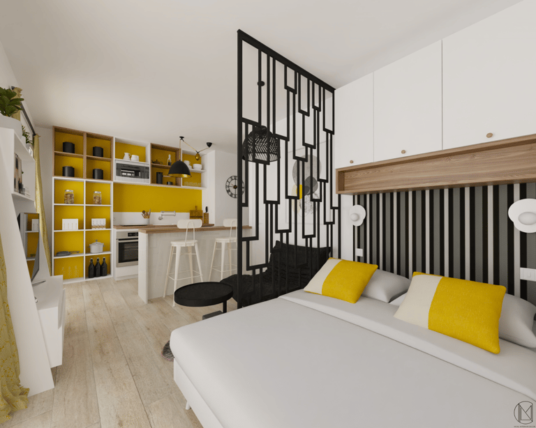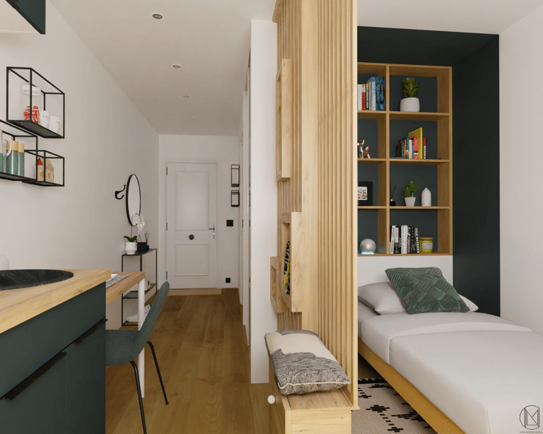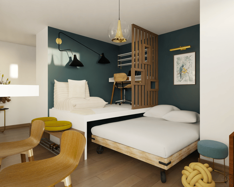 Espace nuit, coin repas, bureau...compartimenter l'espace pour donner à l'unique pièce autant de fonctions différentes.
